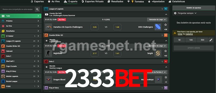 A aposta 2333Bet oferece aos jogadores a experiência mais conveniente de apostas em eSports!